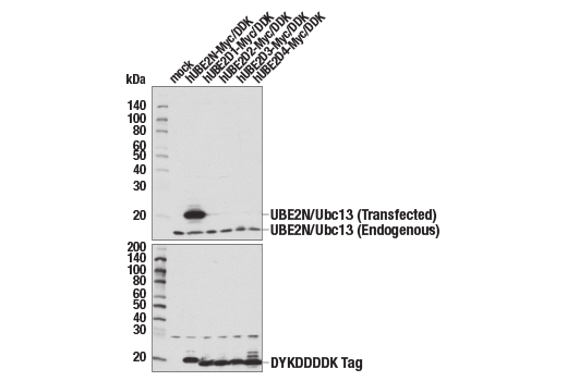 UBE2N/Ubc13 (D2A1) Rabbit Monoclonal Antibody recognizes endogenous levels of total UBE2N/Ubc13 protein. This antibody does not cross-react with UBE2D family members.
