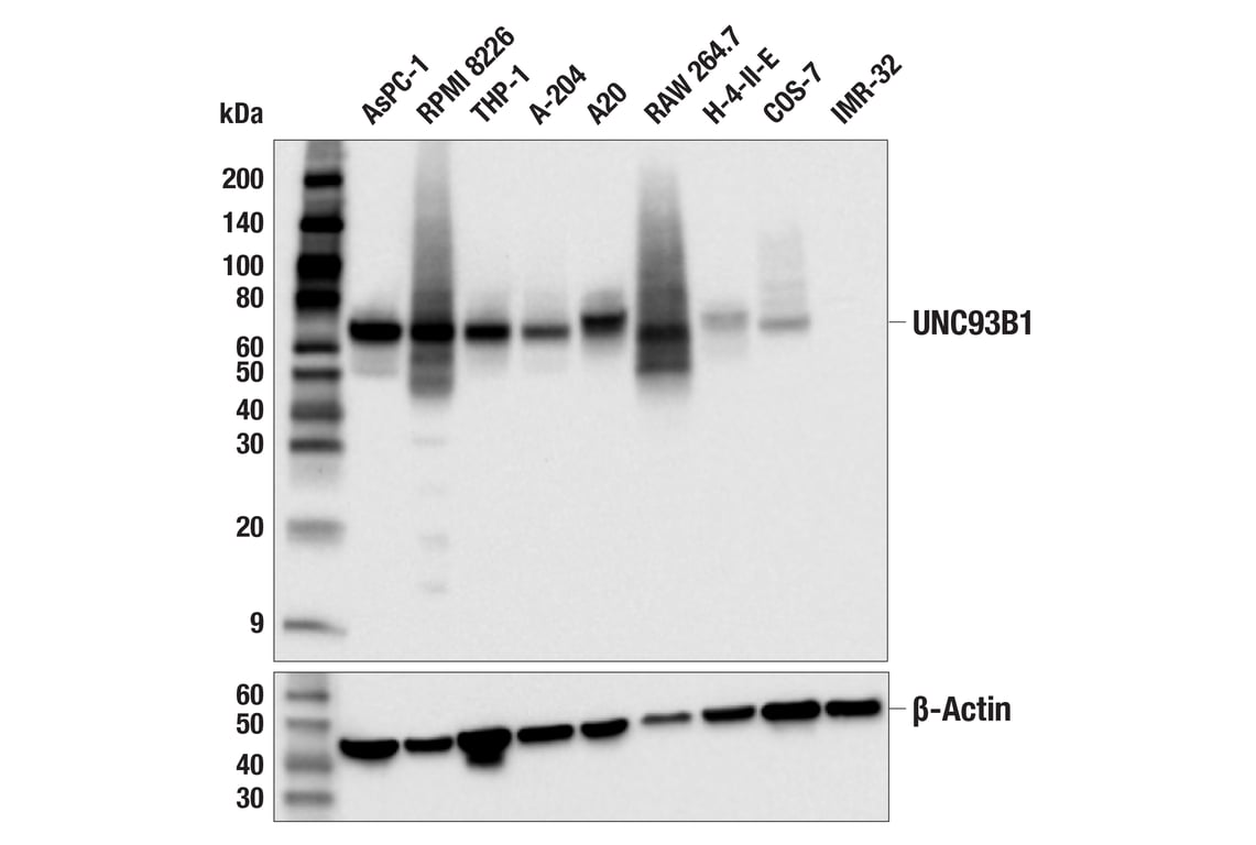 UNC93B1 (E4W2T) Rabbit Monoclonal Antibody recognizes endogenous levels of total UNC93B1 protein.