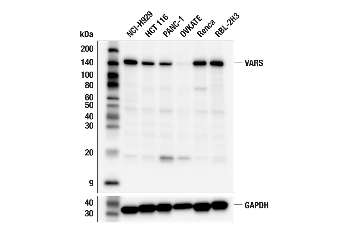 VARS (F7B1D) Rabbit Monoclonal Antibody recognizes endogenous levels of total VARS protein. This antibody detects an approximately 18 kDa protein of unknown identity in some cell lines.