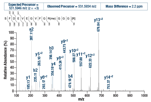7. Detect PTMScan® Control Peptides Mono-Methyl Arginine in the LCMS data file.