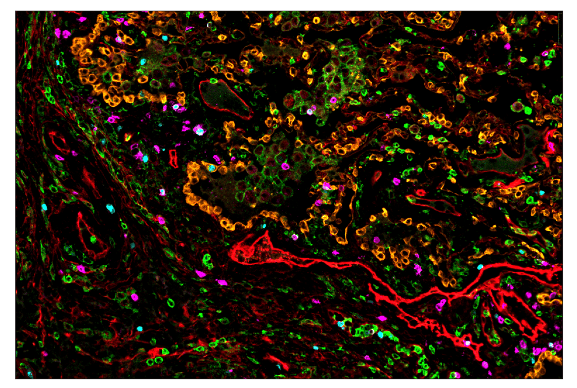 SignalStar Oligo-Antibody Pairs are compatible with the SignalStar Multiplex IHC Buffer Kits for use in fluorescent multiplex imaging experiments. This product includes the oligo-conjugated antibodies and complementary oligos required for labeling your target protein on up to 10 slides. SignalStar Multiplex IHC Buffer Kits are required to amplify and image the target signal. Multiple oligo-antibody pairs can be conveniently combined into a multiplex panel using the SignalStar Multiplex IHC Panel Builder. SignalStar Multiplex IHC Kits & Reagents are not compatible with all of Cell Signaling Technology® products and protocols that are recommended for use in immunohistochemical assays.