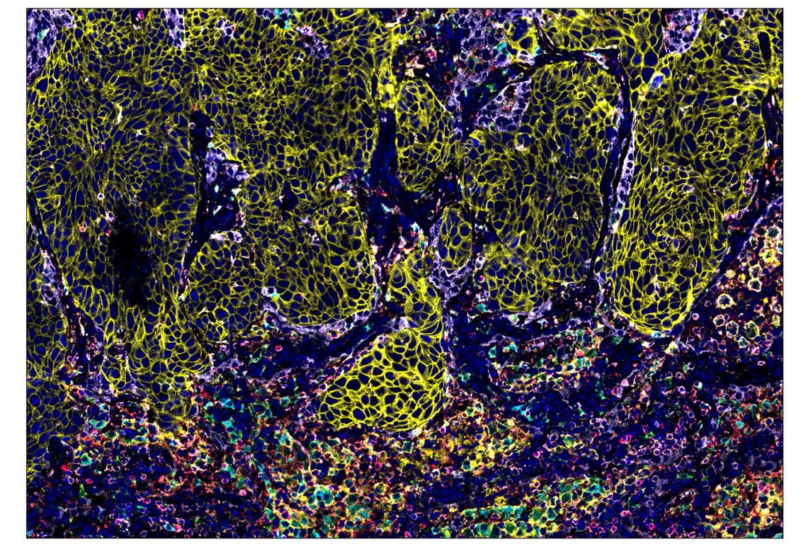 SignalStar Oligo-Antibody Pairs are compatible with the SignalStar Multiplex IHC Buffer Kits for use in fluorescent multiplex imaging experiments. This product includes the oligo-conjugated antibodies and complementary oligos required for labeling your target protein on up to 10 slides. SignalStar Multiplex IHC Buffer Kits are required to amplify and image the target signal. Multiple oligo-antibody pairs can be conveniently combined into a multiplex panel using the SignalStar Multiplex IHC Panel Builder. SignalStar Multiplex IHC Kits & Reagents are not compatible with all of Cell Signaling Technology® products and protocols that are recommended for use in immunohistochemical assays.
