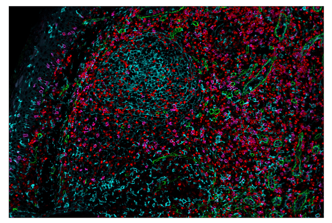 SignalStar Oligo-Antibody Pairs are compatible with the SignalStar Multiplex IHC Buffer Kits for use in fluorescent multiplex imaging experiments. This product includes the oligo-conjugated antibodies and complementary oligos required for labeling your target protein on up to 10 slides. SignalStar Multiplex IHC Buffer Kits are required to amplify and image the target signal. Multiple oligo-antibody pairs can be conveniently combined into a multiplex panel using the SignalStar Multiplex IHC Panel Builder. SignalStar Multiplex IHC Kits & Reagents are not compatible with all of Cell Signaling Technology® products and protocols that are recommended for use in immunohistochemical assays.