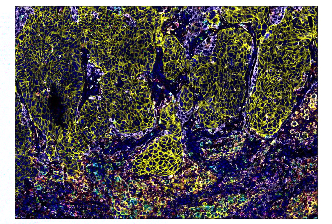 SignalStar Oligo-Antibody Pairs are compatible with the SignalStar Multiplex IHC Buffer Kits for use in fluorescent multiplex imaging experiments. This product includes the oligo-conjugated antibodies and complementary oligos required for labeling your target protein on up to 10 slides. SignalStar Multiplex IHC Buffer Kits are required to amplify and image the target signal. Multiple oligo-antibody pairs can be conveniently combined into a multiplex panel using the SignalStar Multiplex IHC Panel Builder. SignalStar Multiplex IHC Kits & Reagents are not compatible with all of Cell Signaling Technology® products and protocols that are recommended for use in immunohistochemical assays.