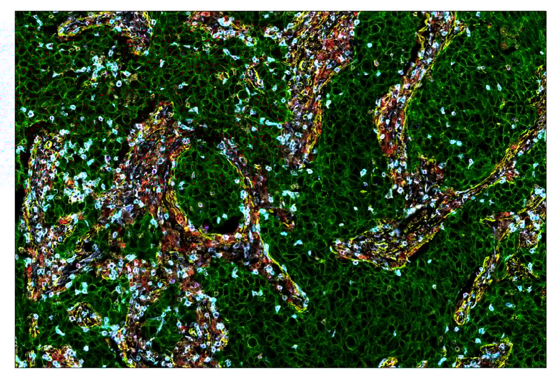 SignalStar Oligo-Antibody Pairs are compatible with the SignalStar Multiplex IHC Buffer Kits for use in fluorescent multiplex imaging experiments. This product includes the oligo-conjugated antibodies and complementary oligos required for labeling your target protein on up to 10 slides. SignalStar Multiplex IHC Buffer Kits are required to amplify and image the target signal. Multiple oligo-antibody pairs can be conveniently combined into a multiplex panel using the SignalStar Multiplex IHC Panel Builder. SignalStar Multiplex IHC Kits & Reagents are not compatible with all of Cell Signaling Technology® products and protocols that are recommended for use in immunohistochemical assays.