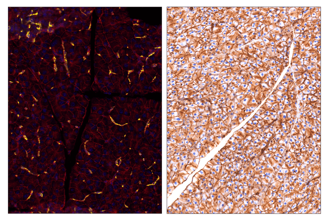 SignalStar Oligo-Antibody Pairs are compatible with the SignalStar Multiplex IHC Buffer Kits for use in fluorescent multiplex imaging experiments. This product includes the oligo-conjugated antibodies and complementary oligos required for labeling your target protein on up to 10 slides. SignalStar Multiplex IHC Buffer Kits are required to amplify and image the target signal. Multiple oligo-antibody pairs can be conveniently combined into a multiplex panel using the SignalStar Multiplex IHC Panel Builder. SignalStar Multiplex IHC Kits & Reagents are not compatible with all of Cell Signaling Technology® products and protocols that are recommended for use in immunohistochemical assays.