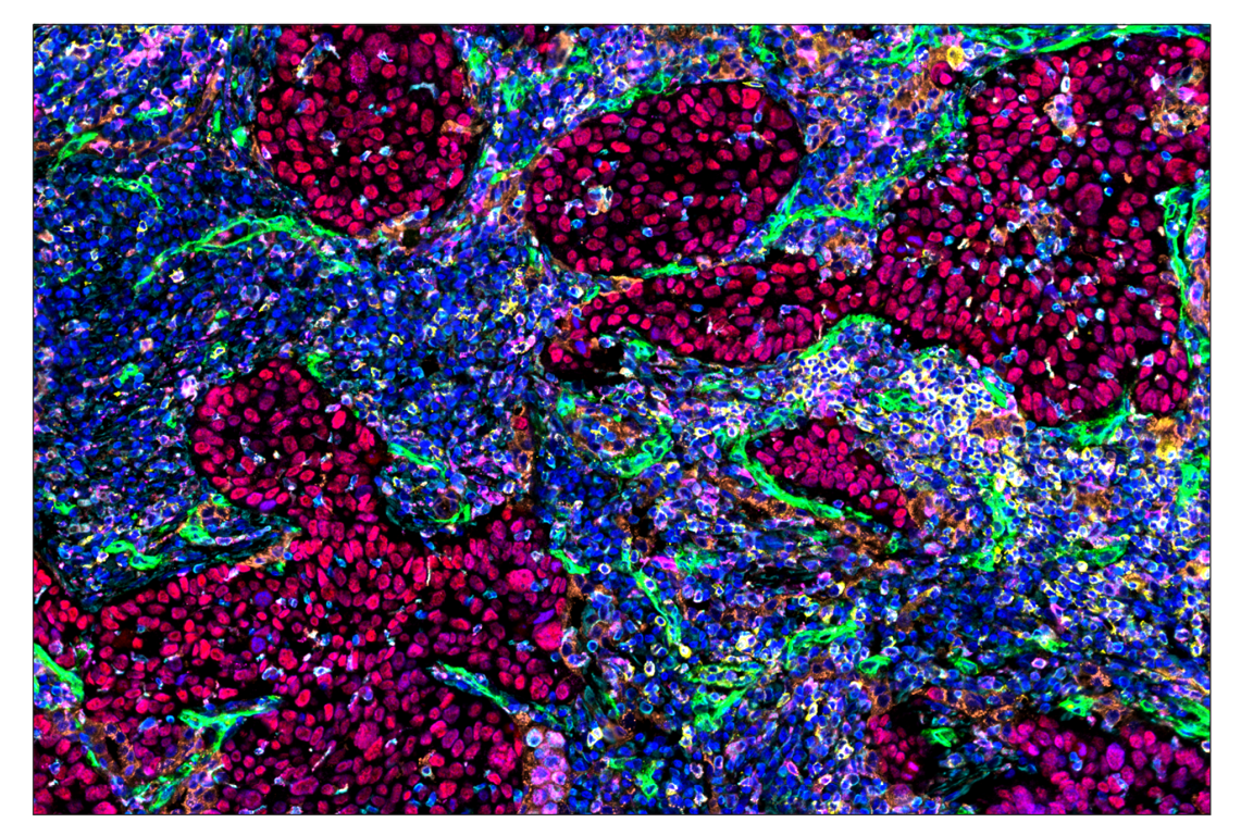 SignalStar Oligo-Antibody Pairs are compatible with the SignalStar Multiplex IHC Buffer Kits for use in fluorescent multiplex imaging experiments. This product includes the oligo-conjugated antibodies and complementary oligos required for labeling your target protein on up to 10 slides. SignalStar Multiplex IHC Buffer Kits are required to amplify and image the target signal. Multiple oligo-antibody pairs can be conveniently combined into a multiplex panel using the SignalStar Multiplex IHC Panel Builder. SignalStar Multiplex IHC Kits & Reagents are not compatible with all of Cell Signaling Technology® products and protocols that are recommended for use in immunohistochemical assays.