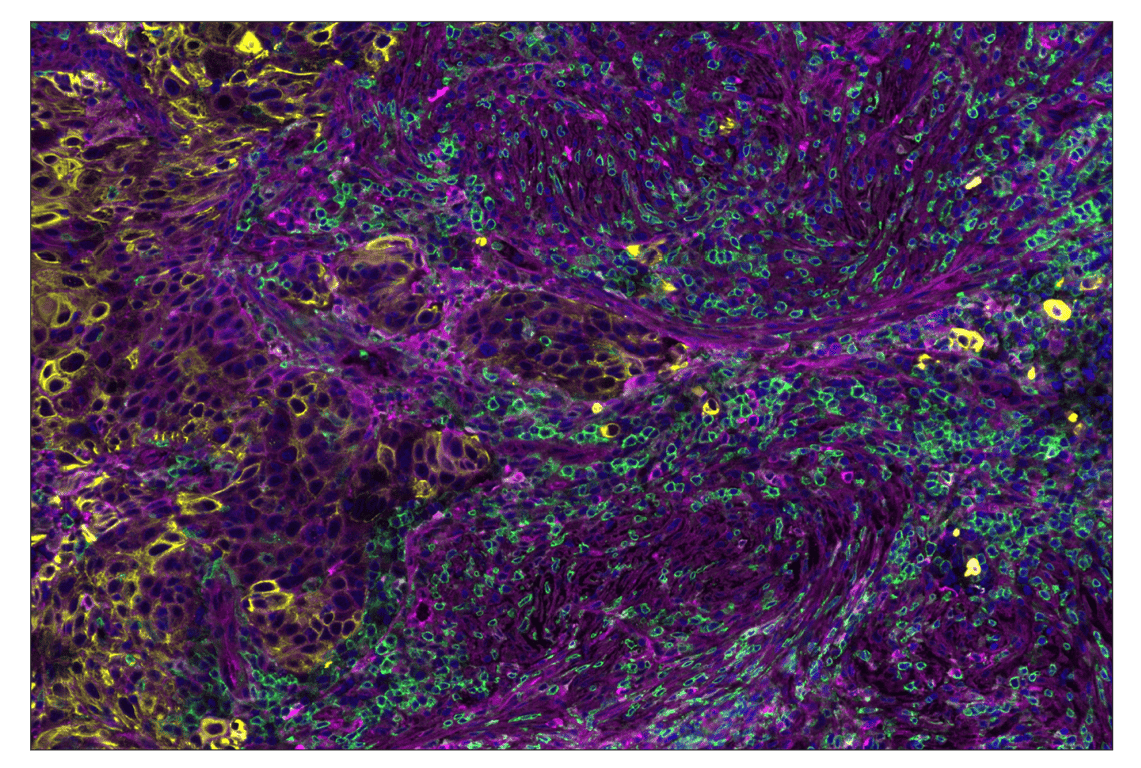 SignalStar Oligo-Antibody Pairs are compatible with the SignalStar Multiplex IHC Buffer Kits for use in fluorescent multiplex imaging experiments. This product includes the oligo-conjugated antibodies and complementary oligos required for labeling your target protein on up to 10 slides. SignalStar Multiplex IHC Buffer Kits are required to amplify and image the target signal. Multiple oligo-antibody pairs can be conveniently combined into a multiplex panel using the SignalStar Multiplex IHC Panel Builder. SignalStar Multiplex IHC Kits & Reagents are not compatible with all of Cell Signaling Technology® products and protocols that are recommended for use in immunohistochemical assays.