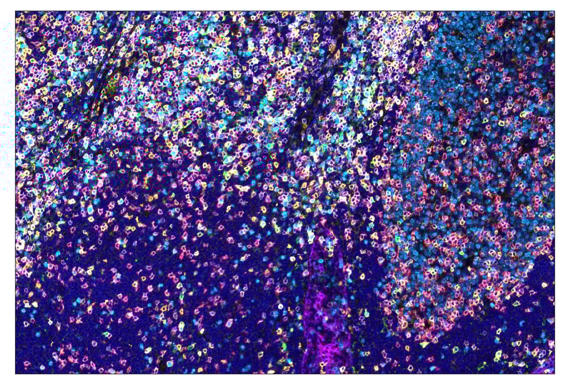 SignalStar Oligo-Antibody Pairs are compatible with the SignalStar Multiplex IHC Buffer Kits for use in fluorescent multiplex imaging experiments. This product includes the oligo-conjugated antibodies and complementary oligos required for labeling your target protein on up to 10 slides. SignalStar Multiplex IHC Buffer Kits are required to amplify and image the target signal. Multiple oligo-antibody pairs can be conveniently combined into a multiplex panel using the SignalStar Multiplex IHC Panel Builder. SignalStar Multiplex IHC Kits & Reagents are not compatible with all of Cell Signaling Technology® products and protocols that are recommended for use in immunohistochemical assays.