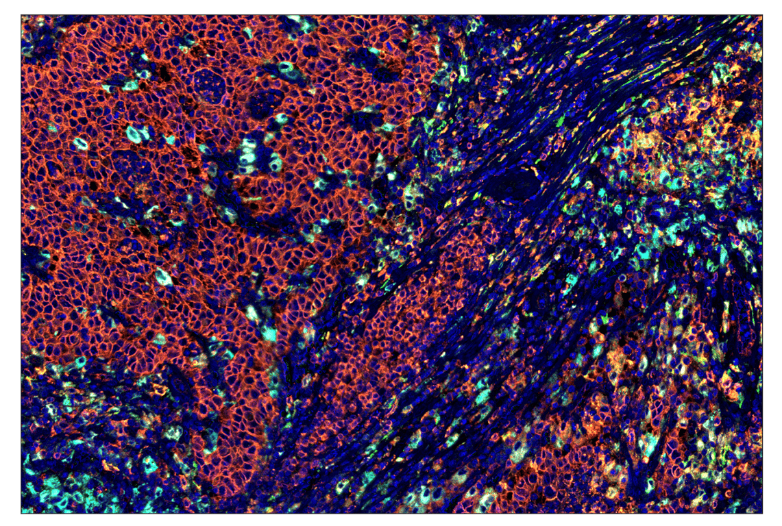 SignalStar Oligo-Antibody Pairs are compatible with the SignalStar Multiplex IHC Buffer Kits for use in fluorescent multiplex imaging experiments. This product includes the oligo-conjugated antibodies and complementary oligos required for labeling your target protein on up to 10 slides. SignalStar Multiplex IHC Buffer Kits are required to amplify and image the target signal. Multiple oligo-antibody pairs can be conveniently combined into a multiplex panel using the SignalStar Multiplex IHC Panel Builder. SignalStar Multiplex IHC Kits & Reagents are not compatible with all of Cell Signaling Technology® products and protocols that are recommended for use in immunohistochemical assays.