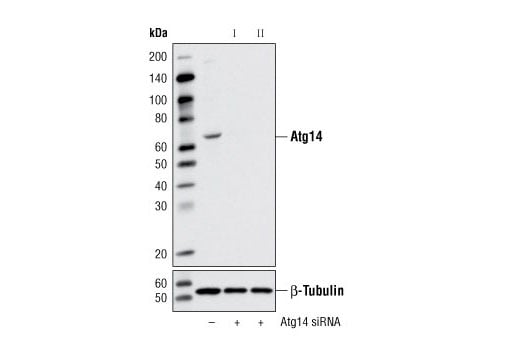 CST recommends transfection with 100 nM SignalSilence® Atg14 siRNA I 48 to 72 hours prior to cell lysis. For transfection procedure, follow protocol provided by the transfection reagent manufacturer. Please feel free to contact CST with any questions on use.