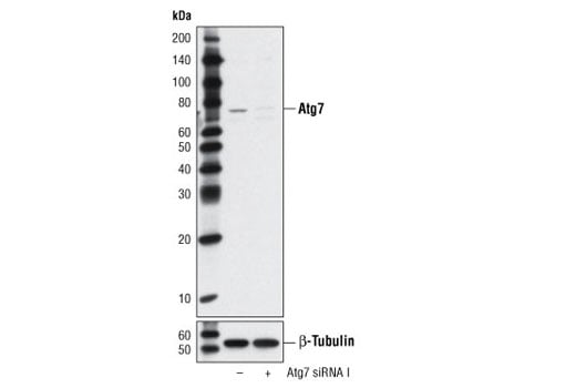 CST recommends transfection with 100 nM SignalSilence® Atg7 siRNA I 48 to 72 hours prior to cell lysis. For transfection procedure, follow protocol provided by the transfection reagent manufacturer. Please feel free to contact CST with any questions on use.