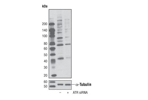 CST recommends transfection with 100 nM SignalSilence® ATR siRNA I 48 to 72 hours prior to cell lysis. For transfection procedure, follow protocol provided by the transfection reagent manufacturer. Please feel free to contact CST with any questions on use.