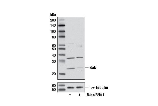 CST recommends transfection with 100 nM SignalSilence® Bak siRNA I 48 to 72 hours prior to cell lysis. For transfection procedure, follow protocol provided by the transfection reagent manufacturer. Please feel free to contact CST with any questions on use.