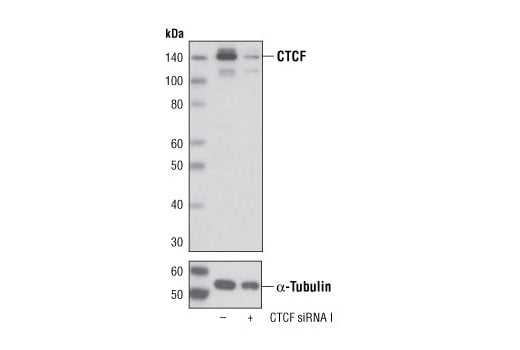 CST recommends transfection with 100 nM SignalSilence® CTCF siRNA I 48 to 72 hours prior to cell lysis. For transfection procedure, follow protocol provided by the transfection reagent manufacturer. Please feel free to contact CST with any questions on use.