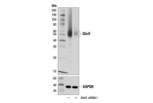 CST recommends transfection with 100 nM SignalSilence® Glut1 siRNA I 48 to 72 hours prior to cell lysis. For transfection procedure, follow protocol provided by the transfection reagent manufacturer. Please feel free to contact CST with any questions on use.