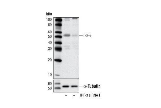 CST recommends transfection with 100 nM SignalSilence® IRF-3 siRNA I 48 to 72 hours prior to cell lysis. For transfection procedure, follow protocol provided by the transfection reagent manufacturer. Please feel free to contact CST with any questions on use.