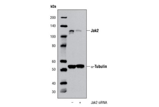 CST recommends transfection with 100 nM SignalSilence® Jak2 siRNA I 48 to 72 hours prior to cell lysis. For transfection procedure, follow protocol provided by the transfection reagent manufacturer. Please feel free to contact CST with any questions on use.