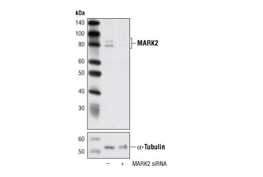 CST recommends transfection with 100 nM SignalSilence® MARK2 siRNA I 48 to 72 hours prior to cell lysis. For transfection procedure, follow protocol provided by the transfection reagent manufacturer. Please feel free to contact CST with any questions on use.