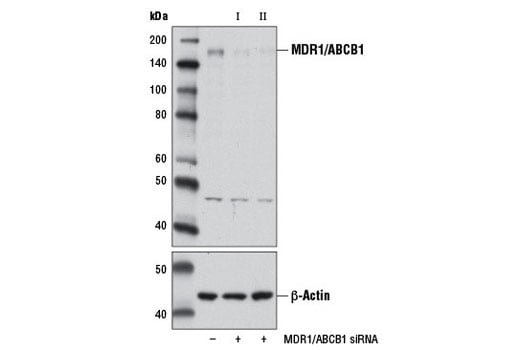 CST recommends transfection with 100 nM SignalSilence® MDR1/ABCB1 siRNA I 48 to 72 hours prior to cell lysis. For transfection procedure, follow protocol provided by the transfection reagent manufacturer. Please feel free to contact CST with any questions on use.