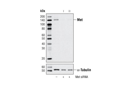 CST recommends transfection with 100 nM SignalSilence® Met siRNA I 48 to 72 hours prior to cell lysis. For transfection procedure, follow protocol provided by the transfection reagent manufacturer. Please feel free to contact CST with any questions on use.
