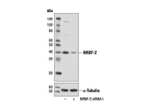 CST recommends transfection with 100 nM SignalSilence® NRBF-2 siRNA I 48 to 72 hours prior to cell lysis. For transfection procedure, follow protocol provided by the transfection reagent manufacturer. Please feel free to contact CST with any questions on use.