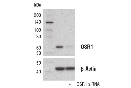 CST recommends transfection with 100 nM SignalSilence® OSR1 siRNA I 48 to 72 hours prior to cell lysis. For transfection procedure, follow the protocol provided by the transfection reagent manufacturer. Please feel free to contact CST with any questions on use.