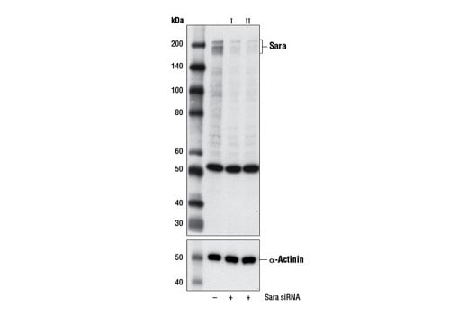 CST recommends transfection with 100 nM SignalSilence® Sara siRNA I 48 to 72 hours prior to cell lysis. For transfection procedure, follow the protocol provided by the transfection reagent manufacturer. Please feel free to contact CST with any questions on use.